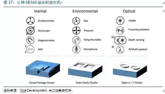 MEMS產(chǎn)業(yè)正向多傳感器集成方向前進(jìn),形成三大類組合傳感器,體積更小、重量更輕、功能集成度更高的組合MEMS傳感器是發(fā)展方向。