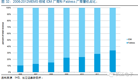 MEMS行業(yè)中Fabless的份額由2006年的10%增加到2012年的32%左右,正如集成電路行業(yè)所經(jīng)歷由的一樣,行業(yè)細(xì)化和分工的趨勢(shì)不可逆轉(zhuǎn)。MEMS傳感器行業(yè)的品種多達(dá)上萬種,單品種的銷量很難放大,在價(jià)格不斷走低的情況下,企業(yè)很難盈利,無法承受大規(guī)模的資本支出。面對(duì)不斷增長(zhǎng)的市場(chǎng)規(guī)模,迫切想進(jìn)入的中小設(shè)計(jì)廠商有很強(qiáng)的代工需求,F(xiàn)abless存在的價(jià)值日益凸顯。除此之外,由于市場(chǎng)規(guī)模相對(duì)過小,缺乏統(tǒng)一工藝,傳統(tǒng)的集成電路代工廠商如臺(tái)積電, 聯(lián)電, 中芯國(guó)際等一線代工廠商較之新進(jìn)入的MEMS代工企業(yè)賽萊克斯和Tronics、IMT并無絕對(duì)的優(yōu)勢(shì),這就給專注于MEMS代工廠商留下了更大的發(fā)展空間。