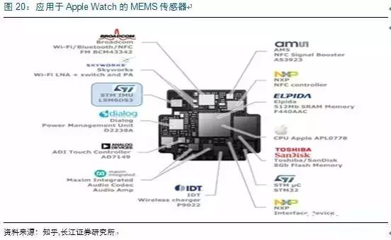 在可穿戴智能設(shè)備上,傳感器的使用更為廣泛。AppleWatch配置的MEMS傳感器超過十種。