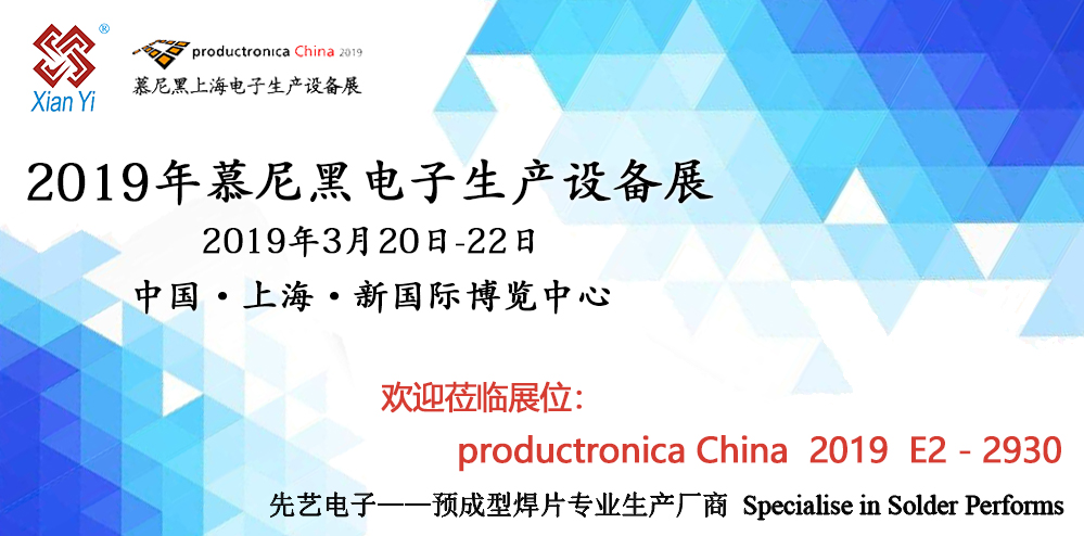2019年3月,廣州先藝電子科技有限公司將同步參加國(guó)內(nèi)兩場(chǎng)大型展會(huì),誠(chéng)邀您參觀2019年3月20日-22日在上海同期舉辦的SEMICON China 2019及慕尼黑電子生產(chǎn)設(shè)備展。