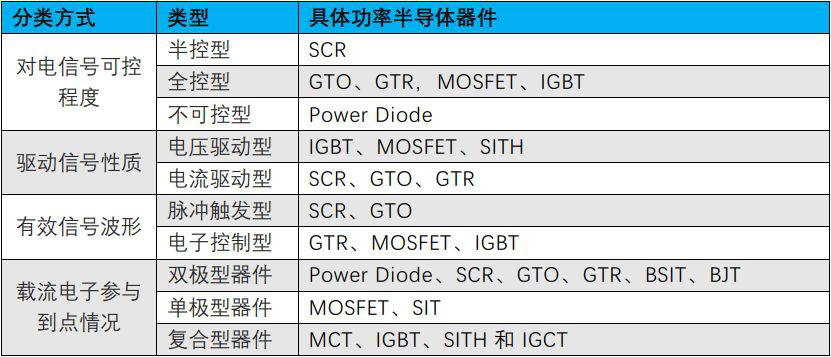 功率半導(dǎo)體器件又可根據(jù)對電路信號的可控程度分為全控型、半控型及不可控型;或按驅(qū)動電路信號性質(zhì)分為電壓驅(qū)動型、電流驅(qū)動型等劃分類別。