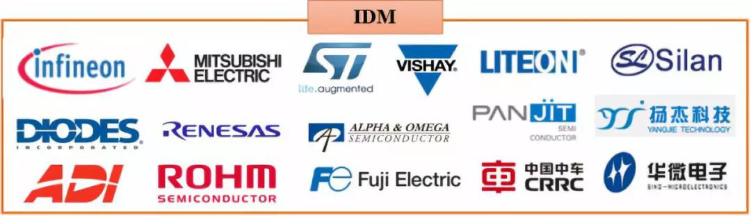 與很多邏輯、存儲(chǔ)半導(dǎo)體廠家不同,功率半導(dǎo)體器件原廠基本都具備完整的晶圓廠、芯片制造廠、封裝廠等產(chǎn)業(yè)鏈環(huán)節(jié),尤其是幾家龍頭企業(yè),均為IDM(整合組件制造商Integrated Design and Manufacture的英文縮寫)模式,如英飛凌、安森美、羅姆等,無(wú)需代工就可獨(dú)立執(zhí)行產(chǎn)品制造的全部流程,利于成本的控制和對(duì)工藝及品控的改進(jìn)。