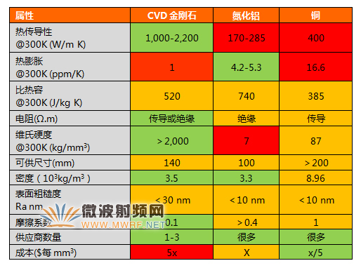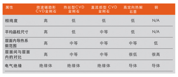 表2. 不同CVD 技術(shù)合成的多晶金剛石熱屬性比較