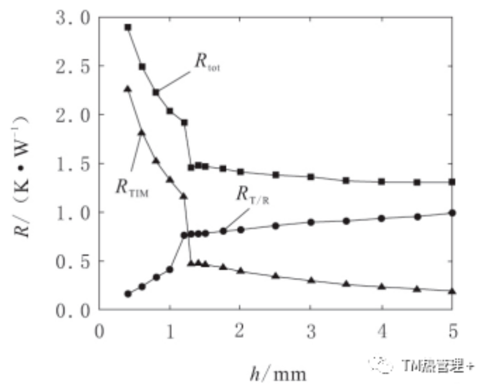 圖6 T/R組件殼體熱阻隨h變化關(guān)系