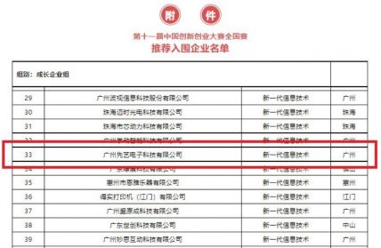 熱烈祝賀先藝電子闖入第十一屆中國創(chuàng)新創(chuàng)業(yè)大賽全國賽和廣東賽區(qū)總決賽!