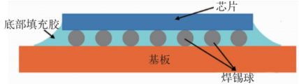 圖3 功率電子封裝結(jié)構(gòu)中的底部填充膠和模塑料示意圖[14]