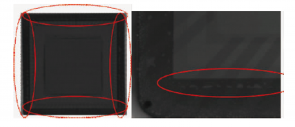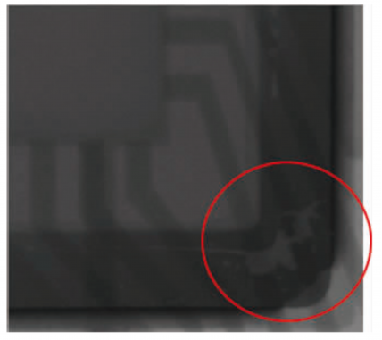 另一種比較典型的空洞是扇形空洞,這類空洞多出現(xiàn)在焊料環(huán)的轉(zhuǎn)角處,如圖8所示。