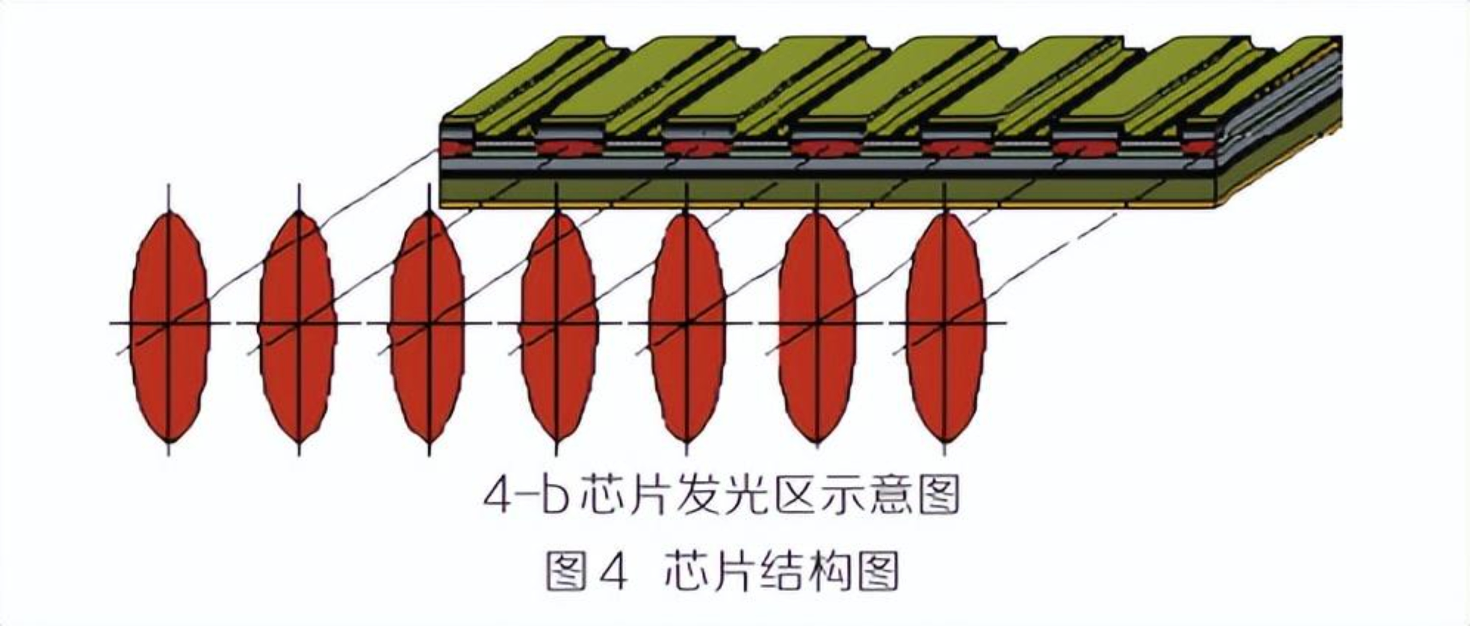 生長好的外延片通過光刻、鈍化、金屬化、減薄等工藝,做成發(fā)光區(qū)寬度100um,在填充因子50%的圓片(見圖4-b),再將圓片解理成2mm腔長的激光器bar條,前后腔面分別鍍增透膜和高反膜,最后制作成長度25px的bar條,每個bar條包含47個發(fā)光點。
