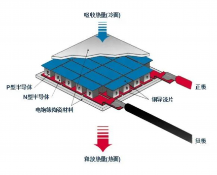 目前,普遍商業(yè)化的半導(dǎo)體制冷片以碲化鉍基為主(碲化鉍為基材,做不同的摻雜形成P級(jí)和N級(jí)),帕爾帖效應(yīng)更明顯,相應(yīng)的制冷效率更高。