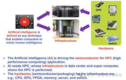 AI需要高性能計(jì)算基礎(chǔ)設(shè)施,如數(shù)據(jù)中心和超級(jí)計(jì)算機(jī)。AI應(yīng)用所需的硬件組件包括CPU、GPU、FPGA、內(nèi)存、服務(wù)器和交換機(jī)。