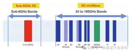 2、高頻段(5G毫米波):24 GHz ≤ 頻率 ≤ 100 GHz, 1 Gbps < 數(shù)據(jù)速率 ≤ 10 Gbps