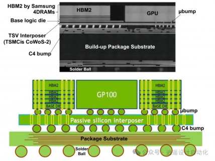 在這種技術(shù)中,諸如GPU和高帶寬存儲(chǔ)器(HBM)等組件使用C2微凸點(diǎn)附著到無源TSV中間層上。然后整個(gè)模塊使用C4凸點(diǎn)連接到封裝基板。