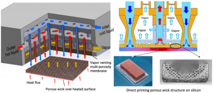 該設(shè)計(jì)模仿了葉片的氣孔,直指狀的孔隙充當(dāng)蒸汽通道,大大降低了蒸汽傳輸阻力,增強(qiáng)了散熱效果。這種結(jié)構(gòu)可以實(shí)現(xiàn)更高的臨界熱通量,從而更好地管理高功率芯片的冷卻。這些燈芯使用陶瓷代替金屬,還提高了耐腐蝕性和熱穩(wěn)定性,這對(duì)于先進(jìn)電子產(chǎn)品的長期性能至關(guān)重要。