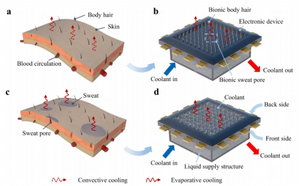 通過仿生汗孔進(jìn)行出汗冷卻的示意圖