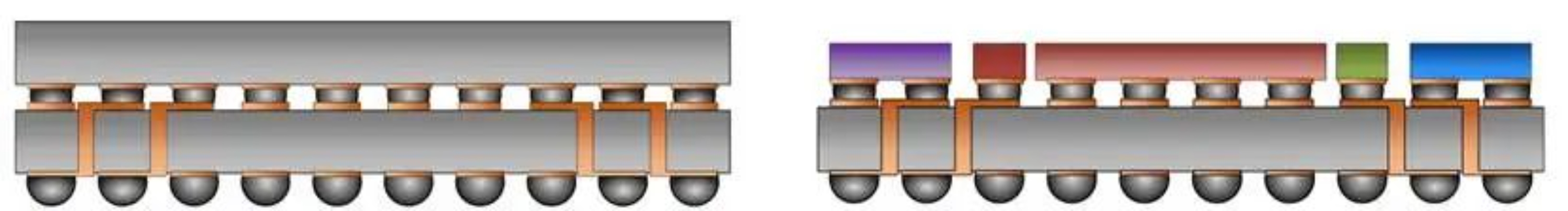隨著用于3D應(yīng)用的硅通孔(TSV)技術(shù)的發(fā)展,可以在WLCSP中形成TSV,提供雙面連接。雖然TSV集成使用“先通孔”和“后通孔”工藝,但在WLCSP的情況下,采用了“最后通孔”的方法。這種集成使得能夠在主WLCSP管芯或其他組件(如無(wú)源器件)的頂部安裝第二個(gè)管芯。該工藝已被MEMS行業(yè)用于在MEMS管芯上安裝邏輯或模擬管芯,反之亦然,如圖6所示。這成為WLCSP異構(gòu)集成復(fù)雜性的另一個(gè)層次.