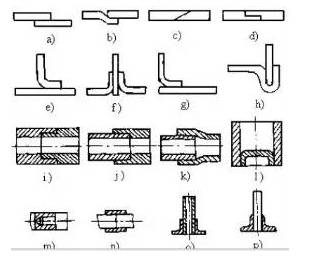 釬焊接頭形式較多,但常使用的有搭接、對接、斜接及T形接等四種基本形式。搭接的接頭強度最高,其次是斜接,最差的是對接,所以承受載荷的零件,一般用搭接。對接只有在承受很小的厚壁構件中才采用。薄壁零件釬焊時,可采用鎖邊接頭以提高接頭強度及密封性。各種釬焊接頭如圖2所示。