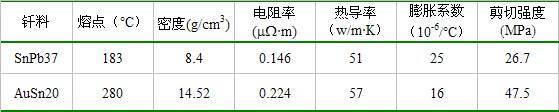 表2 共晶金錫合金的性能