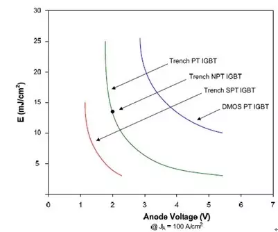 圖7 1200V IGBT的導(dǎo)通降壓與關(guān)斷損耗折的這折中關(guān)系