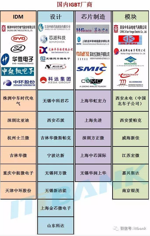 近年,中國IGBT產(chǎn)業(yè)在國家政策推動及市場牽引下得到迅速發(fā)展,已形成了IDM模式和代工模式的IGBT完整產(chǎn)業(yè)鏈,IGBT國產(chǎn)化的進(jìn)程加快,有望擺脫進(jìn)口依賴。以下為國內(nèi)部分頂尖的IGBT廠商,涵蓋了設(shè)計到制造: