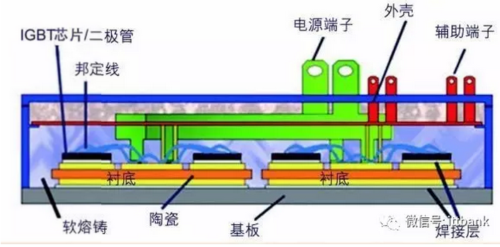 包括基板在內(nèi)的IGBT模塊構(gòu)架示意圖
