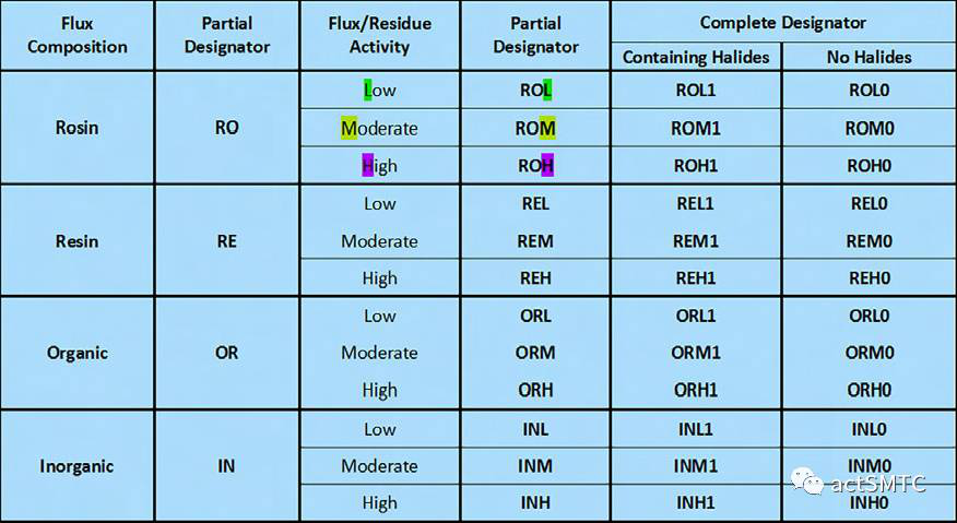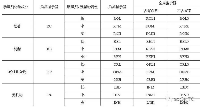 表1.助焊劑分類(原圖)