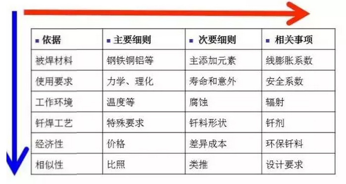上圖是根據(jù)生產(chǎn)實(shí)踐總結(jié)出的釬料與母材的匹配優(yōu)先選用的順序。